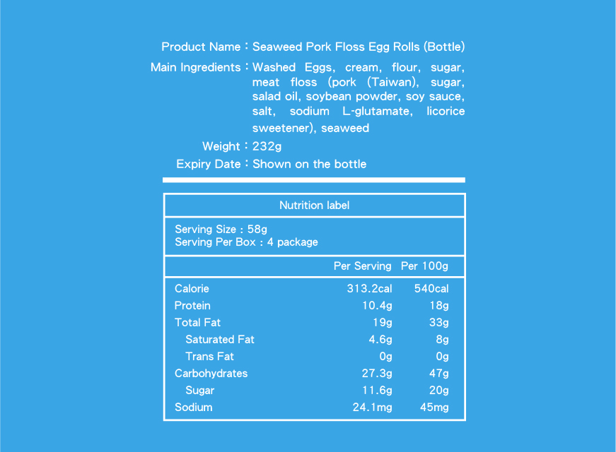 Seaweed Pork Floss Egg Rolls| 8 pcs ( Bottle )