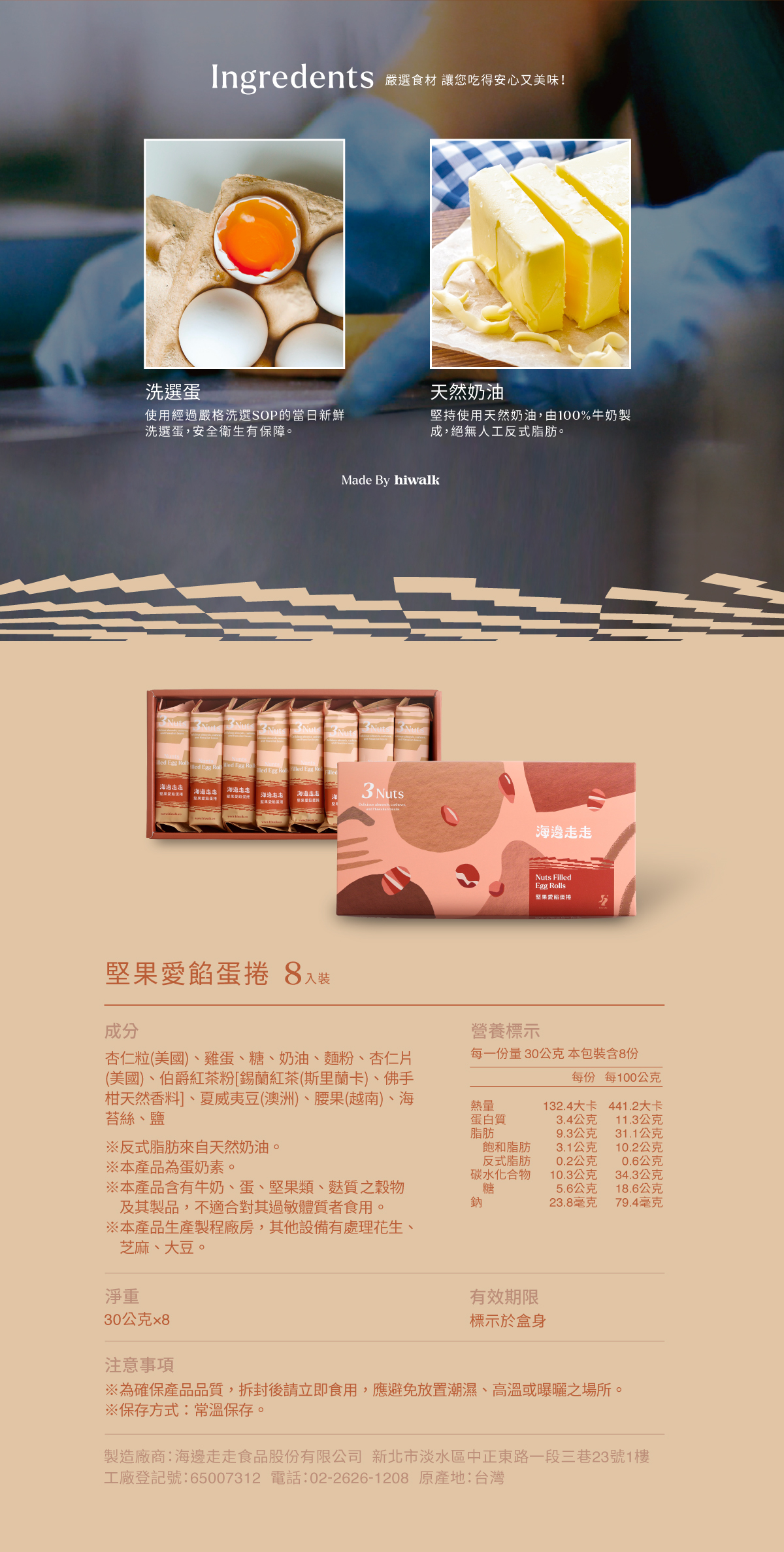 坚果爱馅蛋卷|8支入 (独立包装)
